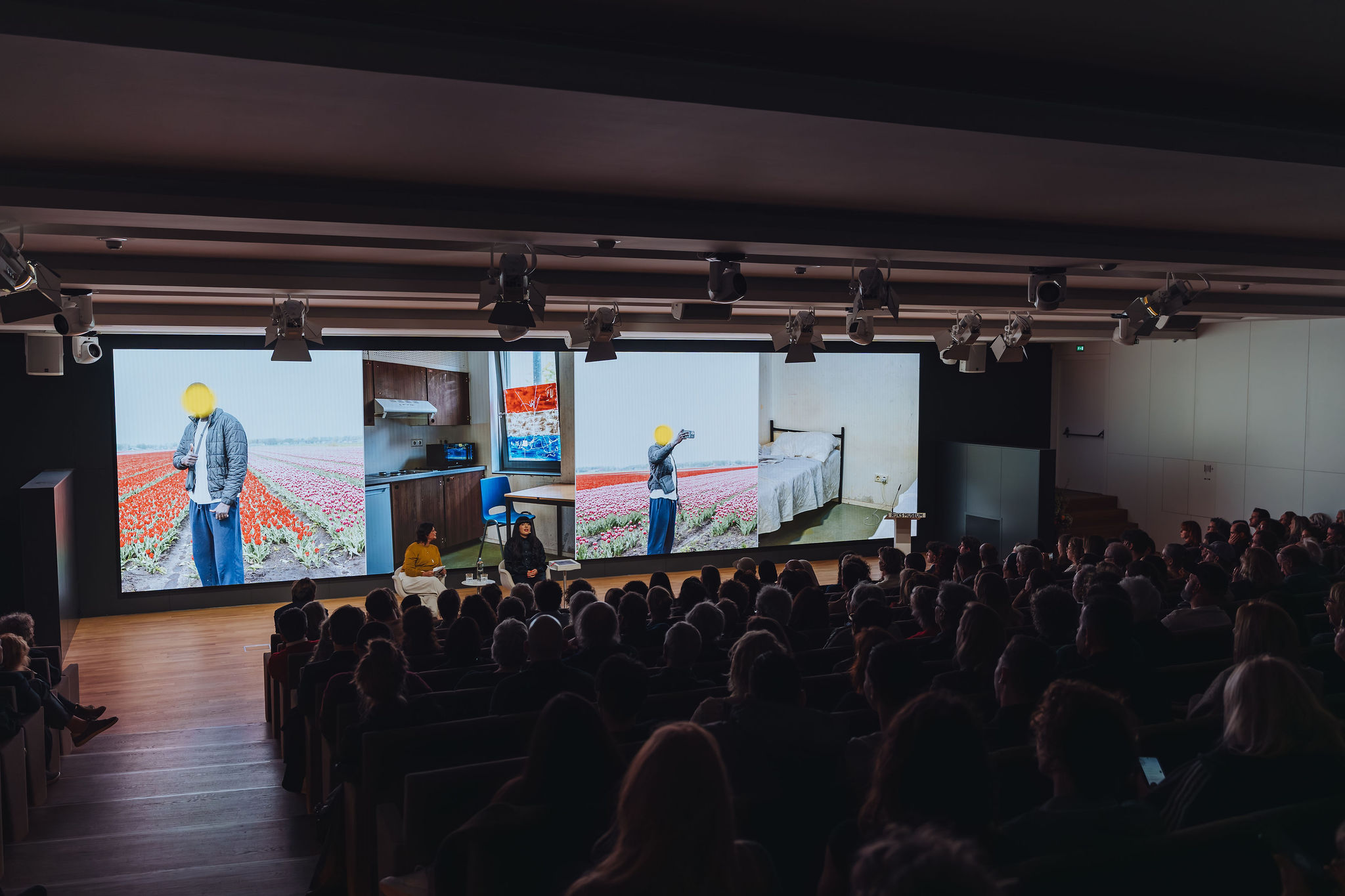 The central figure in her exhibition is a man identified only by his initial: B. Following more than four months in immigration detention at Schiphol Airport and a stay in Ter Apel asylum reception centre, B. is now in the midst of an asylum procedure. By positioning him as the narrator, she reverses the gaze on our asylum procedures: Instead of talking about asylum seekers, she literally has us listen to one of them. In doing so, Farifteh holds up a mirror to the visitor. This exhibition is not about ‘them,’ but us.